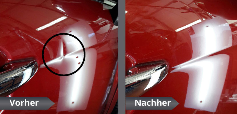Kleine Kratzer und Druckstellen auf der Lackoberfläche werden mit Microschleifmittel beseitigt und professionell poliert. Der Lack bekommt wieder seine glänzende Oberfläche und wird versiegelt.